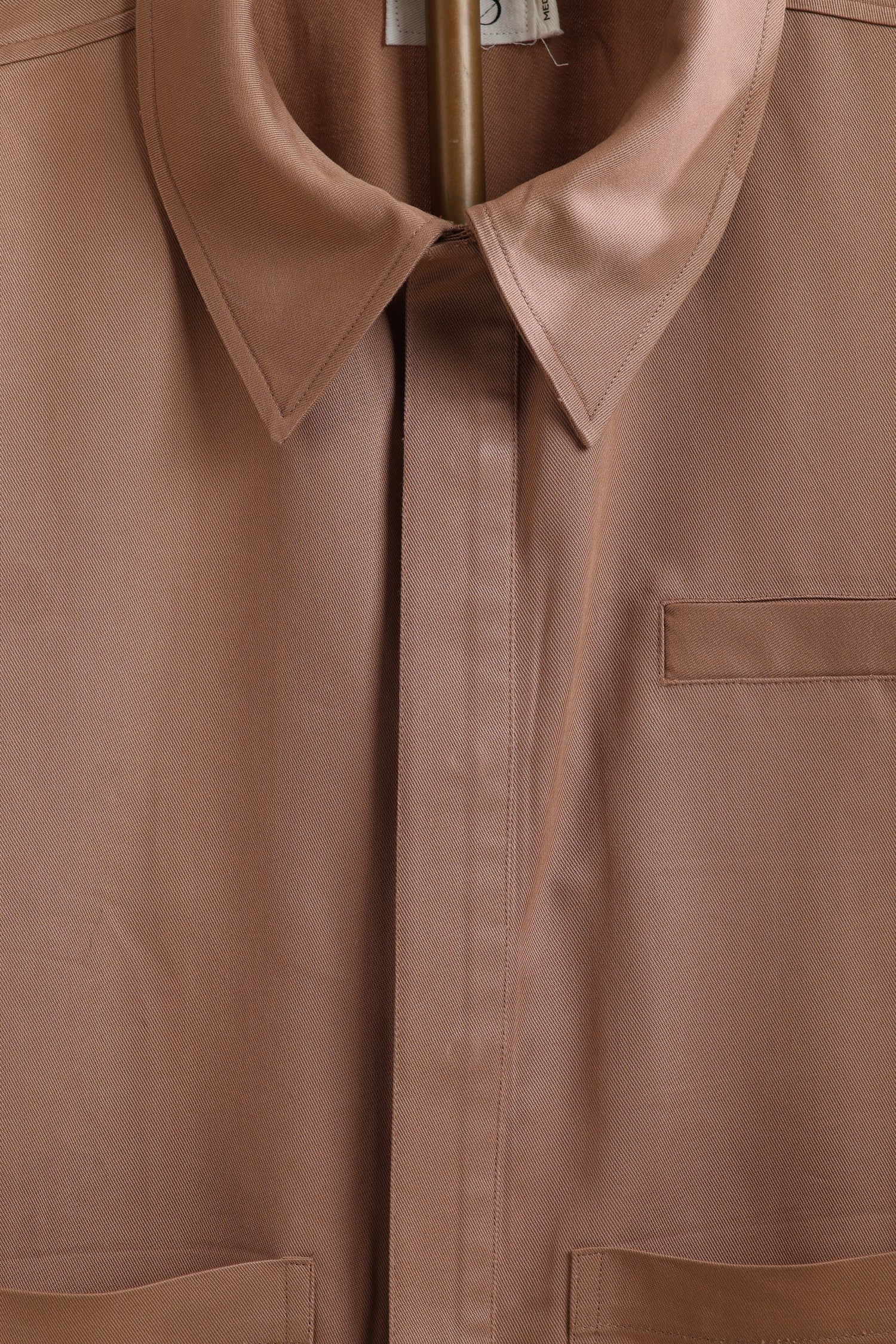 Shirt-jacket silhouette with a crisp collar and clean shoulder line